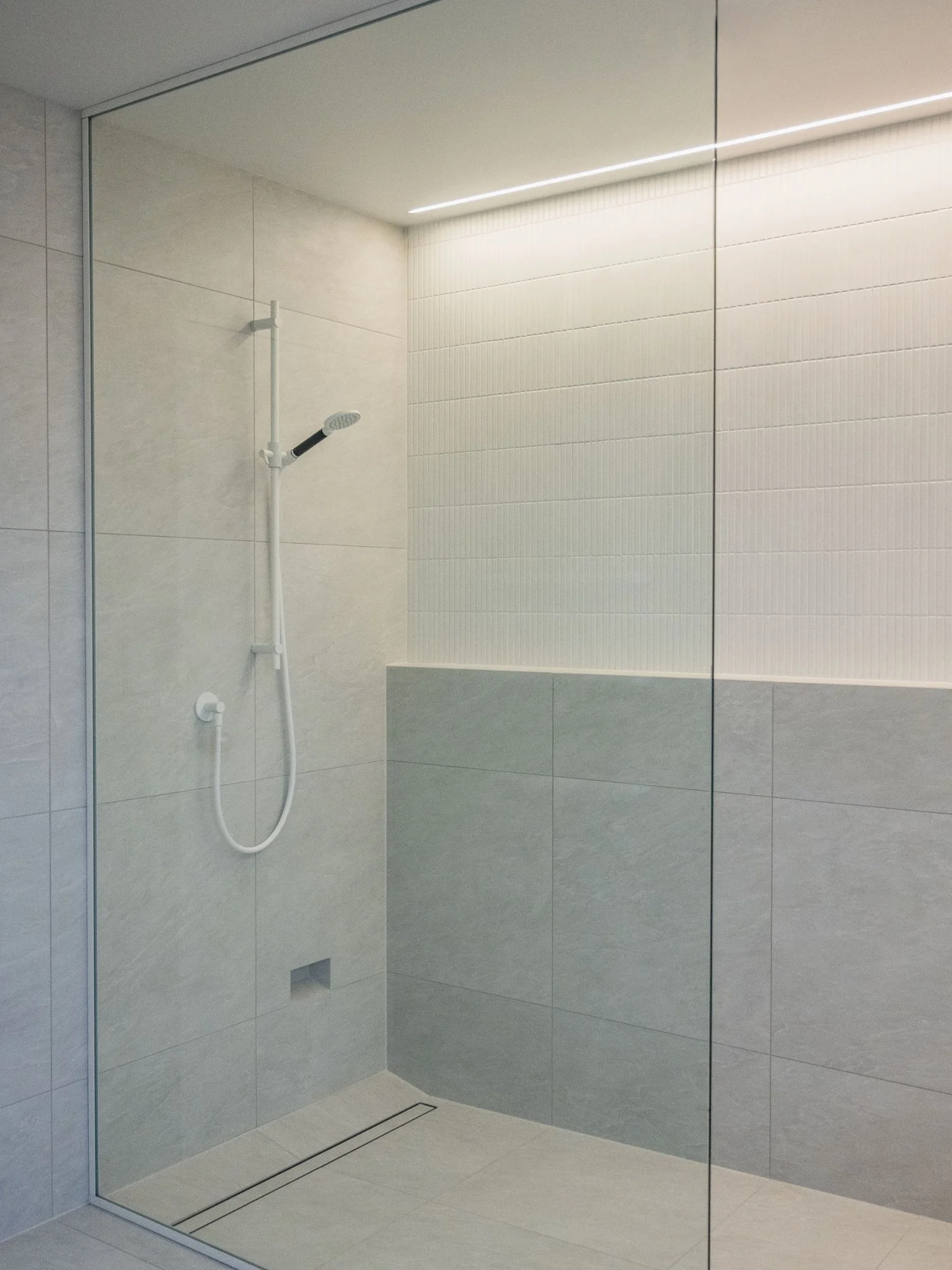 A total renovation, the brief grew from the initial plan, which was to reuse the existing kitchen cabinetry (which had been removed while work was carried out onsite), to transforming the whole apartment into a beautiful beachside bolt hole that the owners could really enjoy. The palette reflects the location – light, bright and breezy with an emphasis on natural materials. The pure wool carpet and engineered oak flooring combine visual symmetry with comfort, practicality, and longevity. Key features such as the understated tongue and groove paneling totally transform the space by giving texture for interest and unifying the spaces. Shutters, additionally lend themselves to the perfect coastal vibe. We reconfigured the bathroom, creating a beautiful walk-in-shower with ample space for wheelchair access, thus future proofing this wonderful premises.